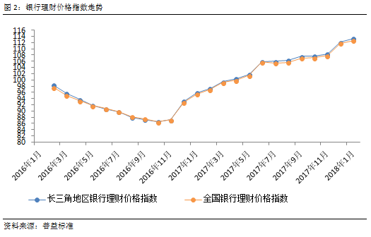 银行理财产品的价格指数反映了产品收益率的涨跌情况,我们可从整体表现及分类指数来对长三角地区银行理财产品收益变化进行分析。
