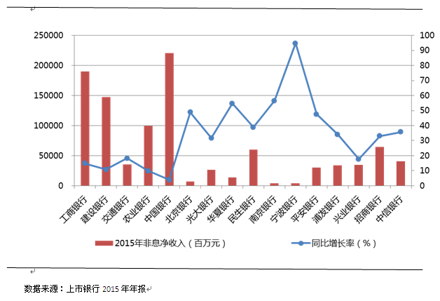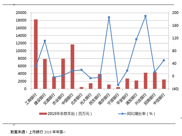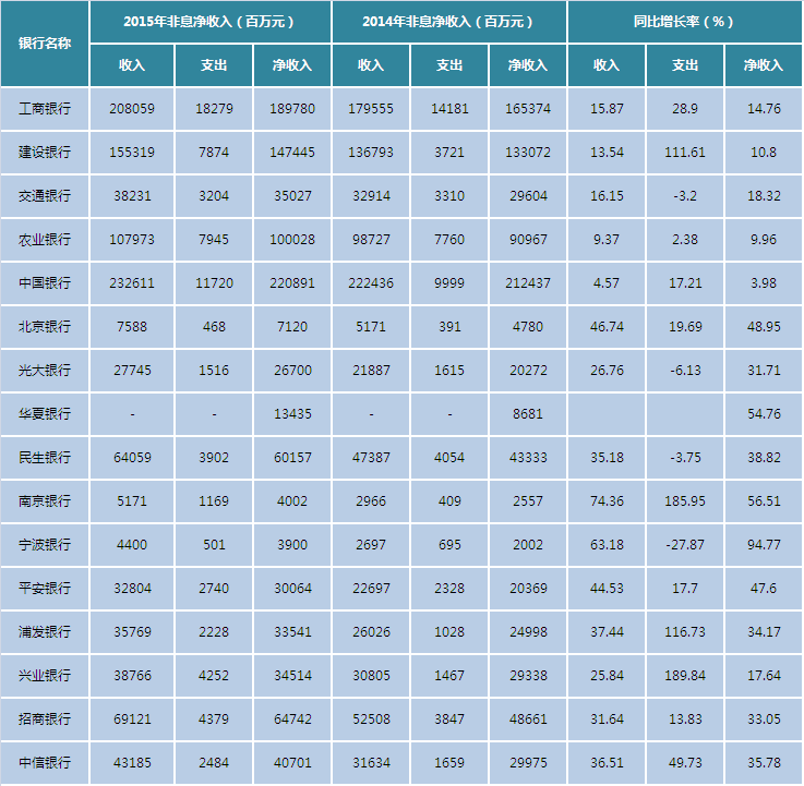 整理16家上市银行2015年年报发现,16家上市银行非息净收入均有上涨,且涨幅靠前的有宁波银行、南京银行、华夏银行、北京银行。而在非息业务支出这一模块,各家银行增降幅度差异较为明显。