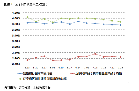 4.区域银行短期产品收益率展示及短期银行理财产品与互联网理财产品收益率走势对比
