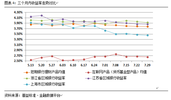 4.区域性银行短期产品收益率展示及短期银行理财产品与互联网理财产品收益率走势对比