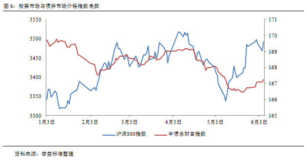 除受资金供求关系影响外,银行理财市场价格指数还受基础资产收益表现影响,图6反映了2017年初以来股票市场和债券市场价格指数走势。可发现当前债市波动幅度较大,债券价格受压于资金面和市场情绪,更直接受到监管政策影响,短期难有较好行情表现;股市同样受到监管和市场情绪双重打压。