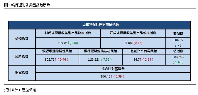 山东省银行理财风险指数是由目标银行承担的隐形风险、产品的价格波动风险以及投资于基础资产传递风险三类风险加权所得,主要反映了银行理财市场的整体风险状况。该指数越大说明对应市场的风险也越高,反之则风险越低。