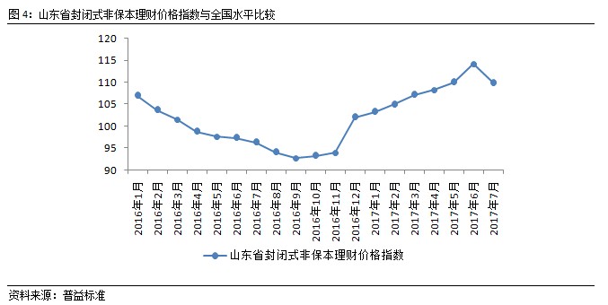 从财富指数来看,7月财富指数平缓上涨,增速较上月略有提升,凸显了山东省银行理财产品显著的财富积累效应,有利于风险厌恶型投资者进行资产的增值及保值。