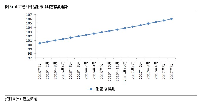 山东省财富指数相较7月环比上涨0.39点至106.43点,进一步凸显银行理财产品保值增值功能。