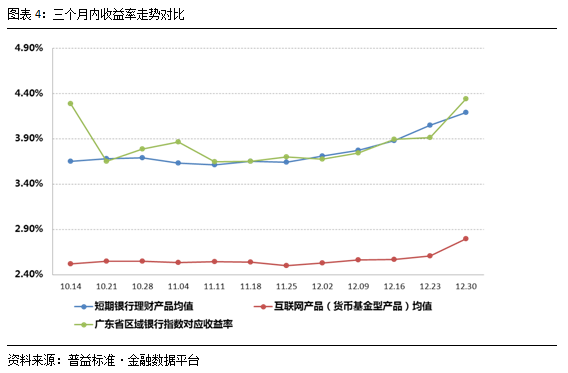 4.区域银行短期产品收益率展示及短期银行理财产品与互联网理财产品收益率走势对比
