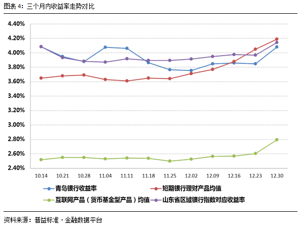 4.区域银行短期产品收益率展示及短期银行理财产品与互联网理财产品收益率走势对比