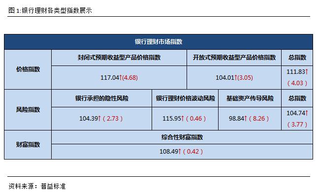 全国银行理财风险指数是由目标银行承担的隐形风险、价格波动风险以及投资于基础资产传递风险三类风险加权所得,主要反映了银行理财市场的整体风险状况。该指数越大说明对应市场的风险也越高,反之则风险越低。