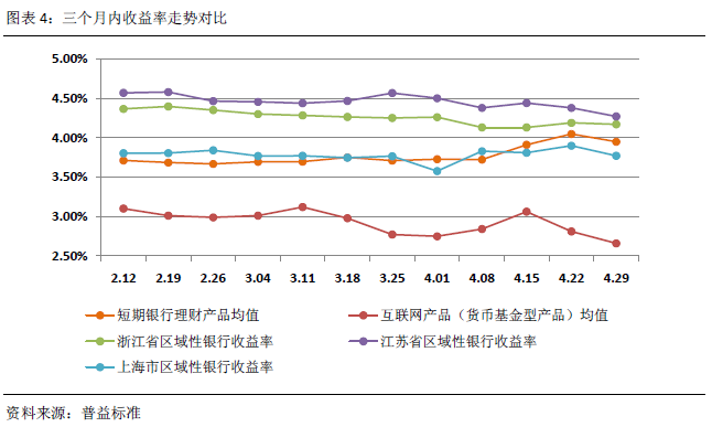4.区域性银行收益率展示及短期银行理财产品与互联网理财产品收益率走势对比