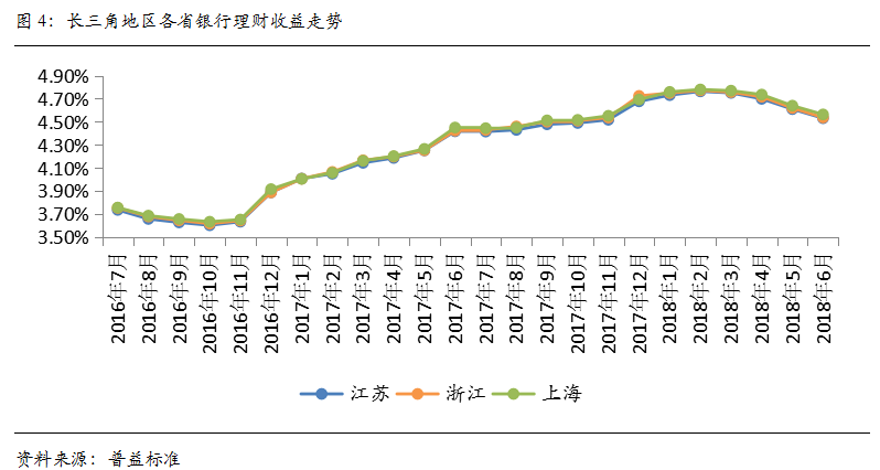 在目前宽货币紧信用流动性格局下,长三角地区银行理财收益仍两倍高于全国CPI水平,投资者可适当配置银行理财产品,保持投资收益稳健性。
