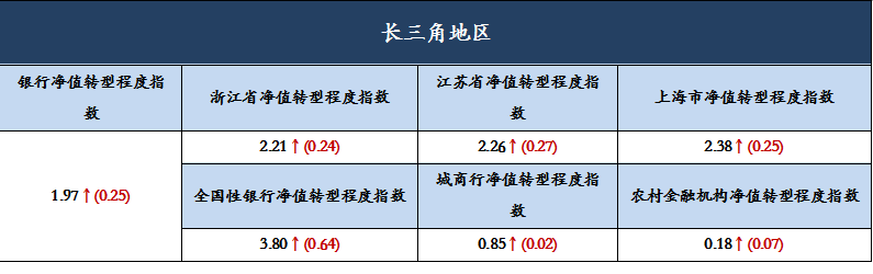 长三角净值转型程度指数加速提升,环比上涨0.25点至1.97点