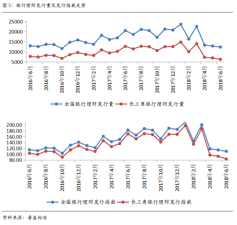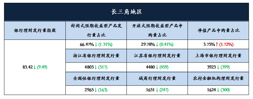 4.长三角银行理财产品发行量加速下滑,发行指数进一步下跌