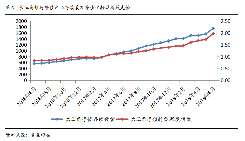 从净值转型程度指数表现来看,本月,长三角地区净值转型程度指数为1.97点,环比上涨0.25点,环比涨幅是上月的5倍。在资管新规要求银行理财向净值化转型的大背景下,长三角银行理财净值化转型加速推进。