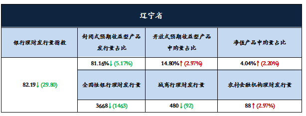 3.辽宁省银行理财产品发行量收缩明显,发行指数大幅下跌