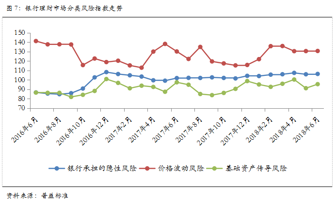 一般而言,银行承担的隐性风险主要是指刚性兑付前提下银行为理财产品预期收益率提供的隐性背书所带来的风险;价格波动风险指的是银行理财产品到期后无法按照预期收益率兑付的风险;而基础资产传导风险即为由投资的基础资产传递而来的风险。