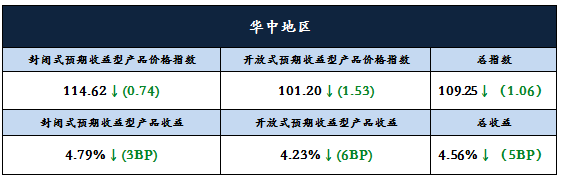 华中地区银行理财收益持续下行,跌幅有所收敛