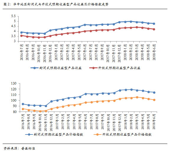 从收益水平来看,由于市场流动性持续宽松,本月华中地区封闭式预期收益型产品收益环比下降9BP至4.79%,开放式预期收益型产品收益环比下降6BP至4.23%。