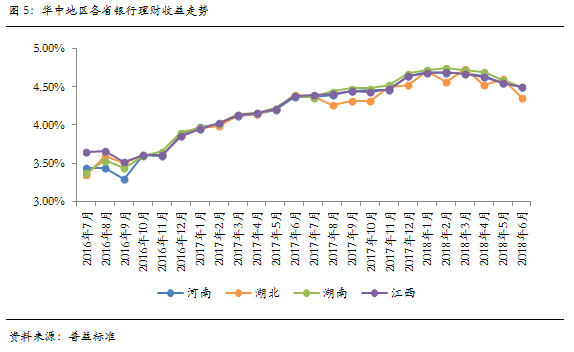 1.华中地区银行理财收益环比下降5BP至4.56%
