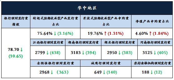3.华中地区银行理财产品发行量环比下滑,跌幅扩大
