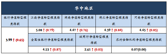华中地区净值转型程度指数持续提升,环比上涨0.65点至3.99