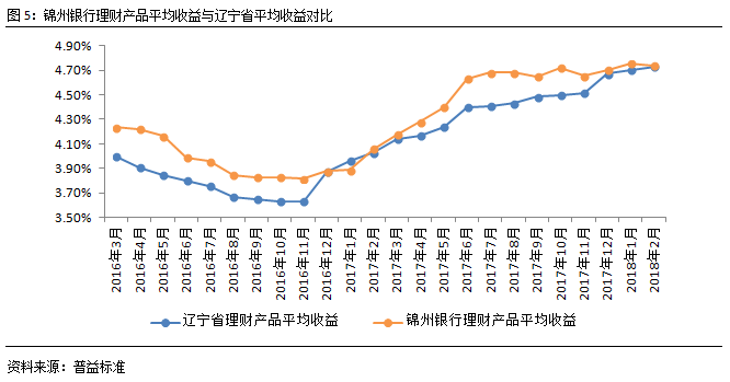锦州银行收益表现稳定。2017年2月,锦州银行理财产品平均收益较1月小幅回落2BP,与辽宁地区平均水平进一步趋近。从走势变化来看,自2017年6月开始,锦州银行理财产品平均收益便表现出了横盘调整的态势,整体收益波动较小,凸显该行理财产品定价的。随着3月季末考核叠加CRA到期等因素,预计3月整体流动性趋近,锦州银行将继续保持相对于整个辽宁地区的定价优势。
