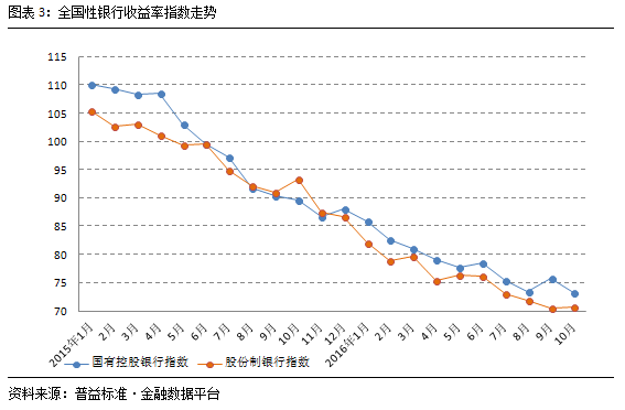 本月,国有银行指数与股份制银行指数出现了较为明显走势差异。其中,国有银行指数继9月大幅上涨后,10月出现了大幅度下挫,环比下跌2.48点,且微幅低于2016年8月的水平,延续了国有银行自2015年以来收益率指数下跌的总趋势。另一方面股份制银行10月收益率指数微幅上调0.12,与9月份收益率指数基本持平,其中非保本型收益率指数表现较好。