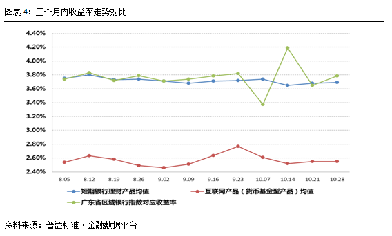 4.区域银行短期产品收益率展示及短期银行理财产品与互联网理财产品收益率走势对比