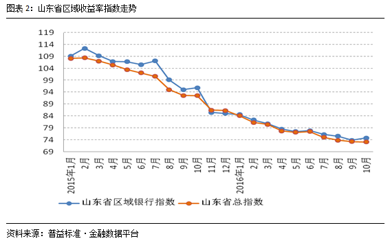 山东省银行收益率总指数下滑幅度收窄,区域银行收益率实现全年最大涨幅