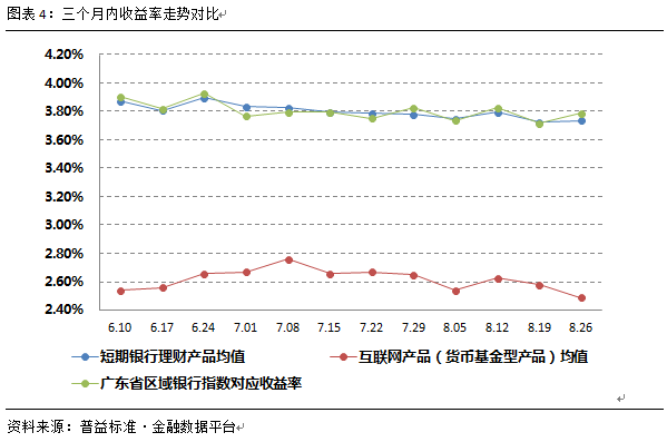 4.区域银行短期产品收益率展示及短期银行理财产品与互联网理财产品收益率走势对比