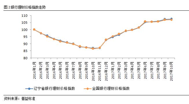 将辽宁省银行理财价格指数与全国银行理财价格指数对比可以发现,两类指数走势相仿,但辽宁省银行理财价格指数仍然略高于全国平均水平。