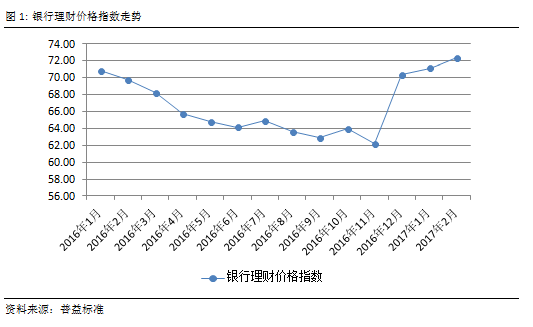 截止2017年2月保本类产品上涨幅度稳定,缓步攀升至63.65点,大幅超越2016年1月的61.56点。非保本类产品在12月大幅上涨7.98%,但进入2017年后,涨幅有明显放缓的表现,其2月价格指数升至75.55点,虽然仅回升至2016年3月的水平,但仍然显著高于保本类产品。整体来看,非保本理财产品的收益显然更有吸引力。