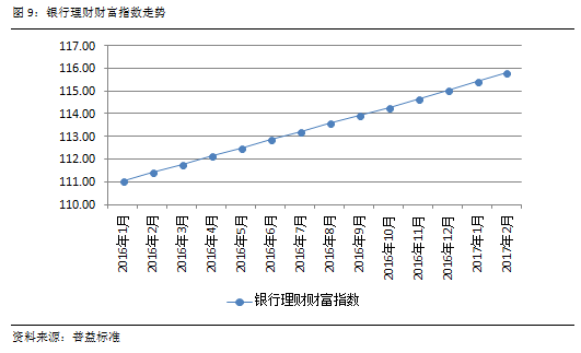 2016年12月资金荒来临后,3种期限类型的理财产品的价格指数均大幅反弹,其中3个月以下期限产品价格指数反弹幅度最强,大涨8.05%,且进入2017年后,走势仍保持稳步向上的表现。