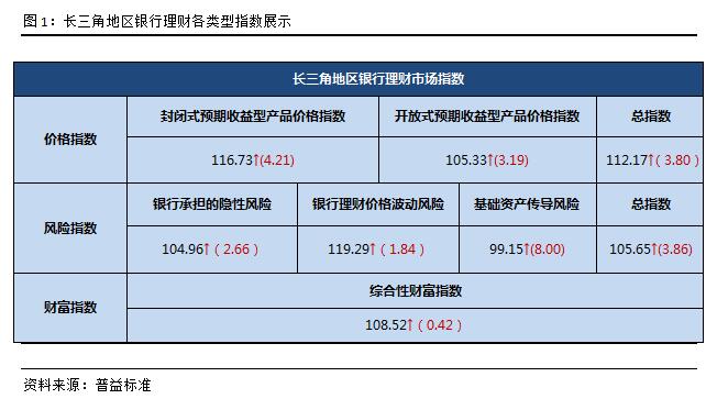 长三角地区银行理财风险指数是由目标银行承担的隐形风险、价格波动风险以及基础资产传导风险三类风险加权所得,主要反映了银行理财市场的整体风险状况。该指数越大说明对应市场的风险也越高,反之则风险越低。