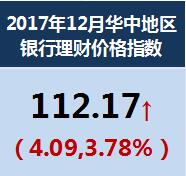 华中地区价格指数进一步向上突破。2017年12月,华中地区银行理财价格指数上行趋势不改,环比上涨4.09点至112.17点。其中,封闭式预期收益型产品价格指数较上月环比上涨4.72点至118.25点,开放式预期收益型产品价格指数环比上涨3.15点至103.05点。封闭式预期收益型与开放式预期收益型产品价格指数继续上涨,带动华中地区整体银行理财价格指数进一步向上突破。