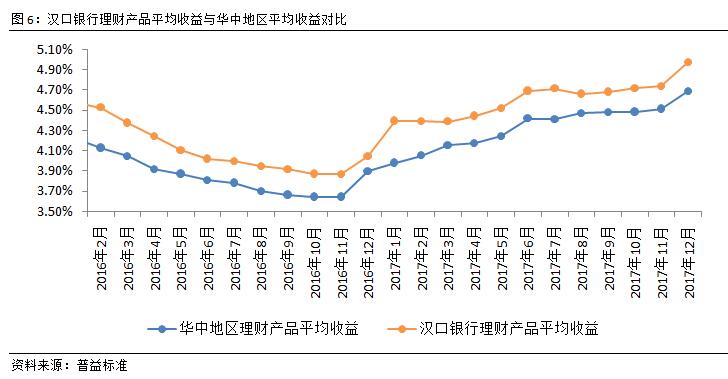 汉口银行理财产品收益大幅拉升。本月,汉口银行理财产品收益上涨明显。受年末效应影响,流动性较为紧张,全国及地区资金需求强烈,银行融资成本增加,汉口银行在本月理财产品平均收益增幅明显扩大。与华中地区理财产品平均收益比较,汉口银行理财产品平均收益水平远超地区平均,展示了其雄厚的实力水平。
