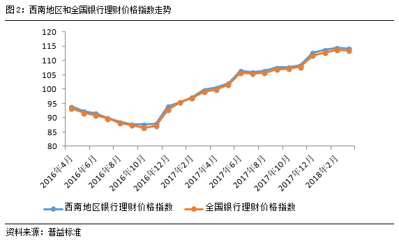 3月西南地区及全国银行理财价格指数走势相仿,但其价格指数仍然优于全国平均水平。