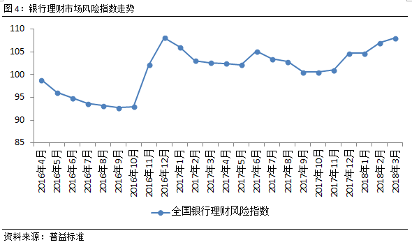 在理财收益下滑的同时,风险水平却有所上升。春节过后,全国银行理财风险指数仍趋于上升走势,并逐渐达到高位。本月风险指数窄幅上涨,资管新规即将落地,对市场的流动性仍将存在冲击,预期或造成短期的市场调整震荡,使得风险加剧。同时,中美贸易摩擦,也使得市场存在对流动性的隐忧。