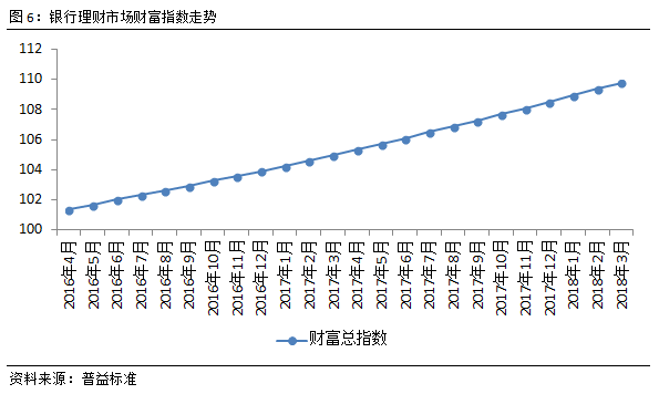 2018年3月,银行理财财富指数相较2月环比上涨0.43点至109.79点,银行财富稳定积累。