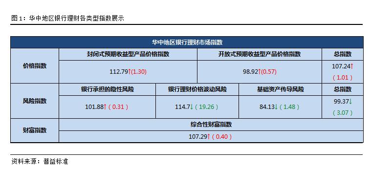 银行理财产品的价格指数反映了产品收益率的涨跌情况,我们可从整体表现及分类指数来对华中地区银行理财产品收益变化进行分析。