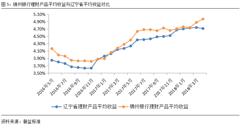 锦州银行收益领先优势仍然明显。2017年4月,锦州银行理财产品平均收益较3月上涨9BP,与辽宁地区平均水平再次拉大。虽然辽宁地区整体理财产品收益趋于回落,但锦州银行理财产品仍然维持了较高的理财收益,在产品净值化转型加速之际,投资者可抓住最后的稳定收益契机选择优质银行理财产品,获取“无风险”的中等收益。预计5月锦州银行理财收益仍将保持相对于辽宁省平均收益的领先幅度。