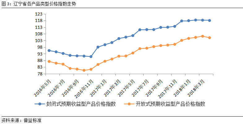 除整体价格指数外,还可以从封闭式预期收益型及开放式预期收益型两个方面观察辽宁省各类型价格指数的走势,有利于投资者根据自身实际情况选择合适的产品。