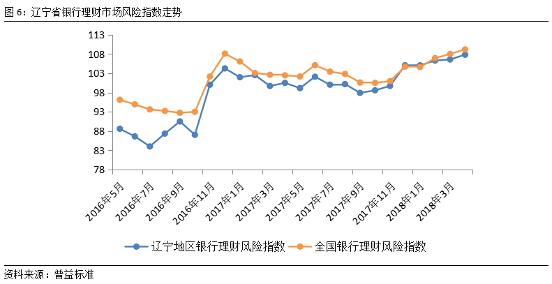 辽宁地区风险回落至全国平均水平之下。从辽宁省银行理财风险指数的走势来看,4月辽宁省银行理财风险指数继续保持在全国平均水平之下,环比上涨1.24点,至107.85点,与全国平均水平的差异为1.37点。整体来看辽宁地区风险指数与全国平均水平差异放大的主要原因是价格波动风险的背离走势。在整体流动性趋于稳定的环境中,单月银行理财兑付事件不会影响风险指数长期走势,预计5月两类指数将呈现趋近变化。