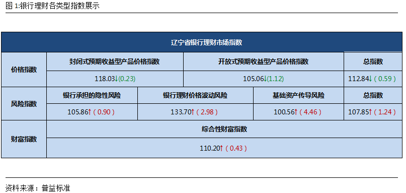 辽宁省银行理财风险指数是由目标银行承担的隐形风险、价格波动风险以及投资于基础资产传递风险三类风险加权所得,主要反映了银行理财市场的整体风险状况。该指数越大说明对应市场的风险也越高,反之则风险越低。