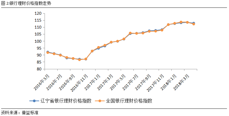 银行理财价格指数平稳回落。辽宁省价格指数于2018年4月小幅下滑0.59点,至112.84点,涨幅较上月有所收敛。从4月的收益变化来看,4月中旬的流动性压力在央行的调控下并未对市场造成冲击,同时随着超额准备金置换MLF的操作,大幅改善了流动性结构性收紧的情况,因此理财产品收益表现出了稳步下行的走势。进入5月后,税期压力仍存,但基于稳健中性货币政策的指引,预计流动性不会出现明显波动;同时,由于资管新规下发后,预期收益型产品规模将不会扩充,各家银行的业务重心也会逐步调整,此类产品的收益定价大幅变动的可能性偏小。