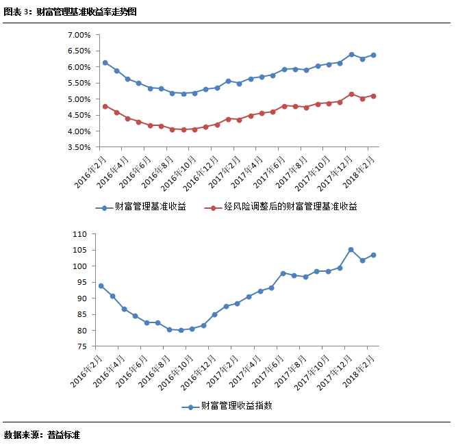 当月财富管理指数环比上涨1.69点,至103.56点,在3月季末考核的影响下,财富管理收益指数仍将大概率呈现上涨走势。