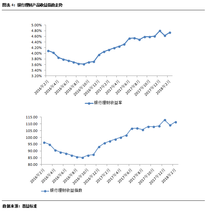 从货币环境来看,随着央行在近期通过CRA(临时准备金动用安排)、MLF(中期借贷便利)、定向降准等操作组合对市场流动性进行有效地控制,2月春节前后的资金面都保持了较高的稳定程度。货币市场整体表现对于理财定价影响较大,整体趋稳的流动性也保证了当月理财收益的相对稳定。除货币环境外,监管政策也对理财收益有较大影响,近期资管新规或将落地,较大概率引起理财产品收益的波动。