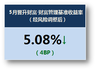 5月流动性调整及监管政策的影响持续发酵,促使财富管理收益指数稳中有降。当月经风险调整后的财富管理基准收益环比下滑4BP至5.08%。