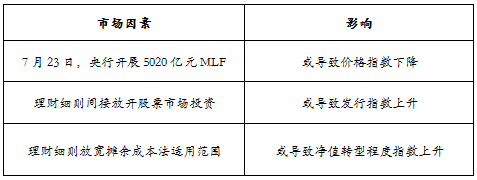 从价格指数来看,封闭式预期收益型产品价格指数环比下跌0.83点至115.07点,开放式预期收益型产品价格指数环比下跌0.70点至101.01点。两类价格指数延续跌势,但跌幅较6月有微弱降低。