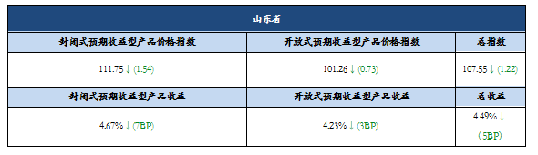 1.山东省银行理财收益与价格指数均维持下跌趋势
