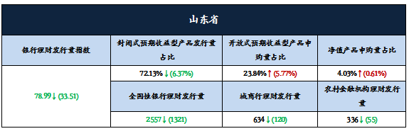 2.山东省银行理财发行指数下跌,发行数量持续收缩